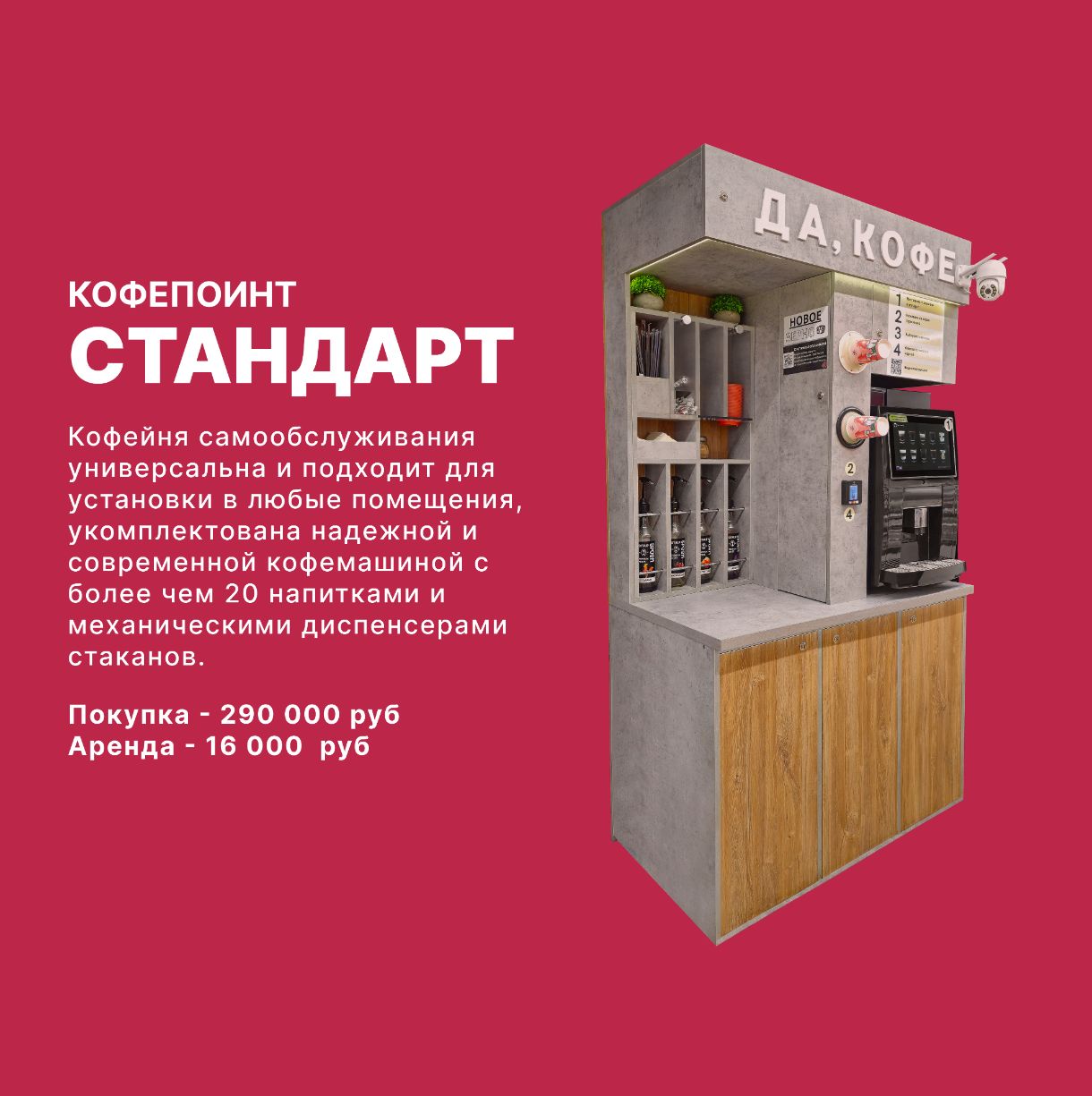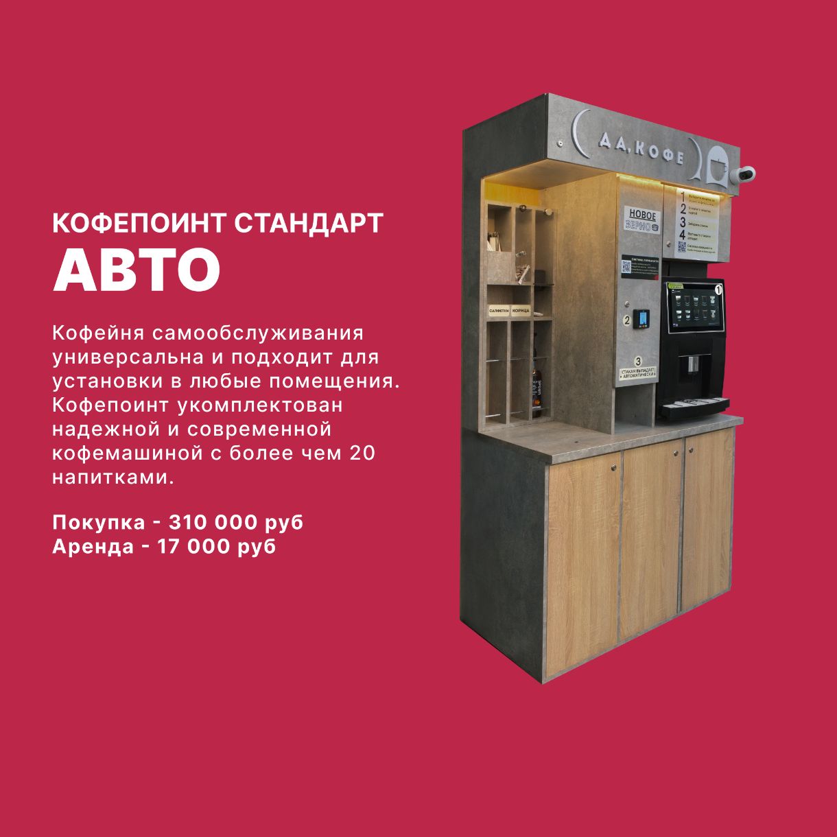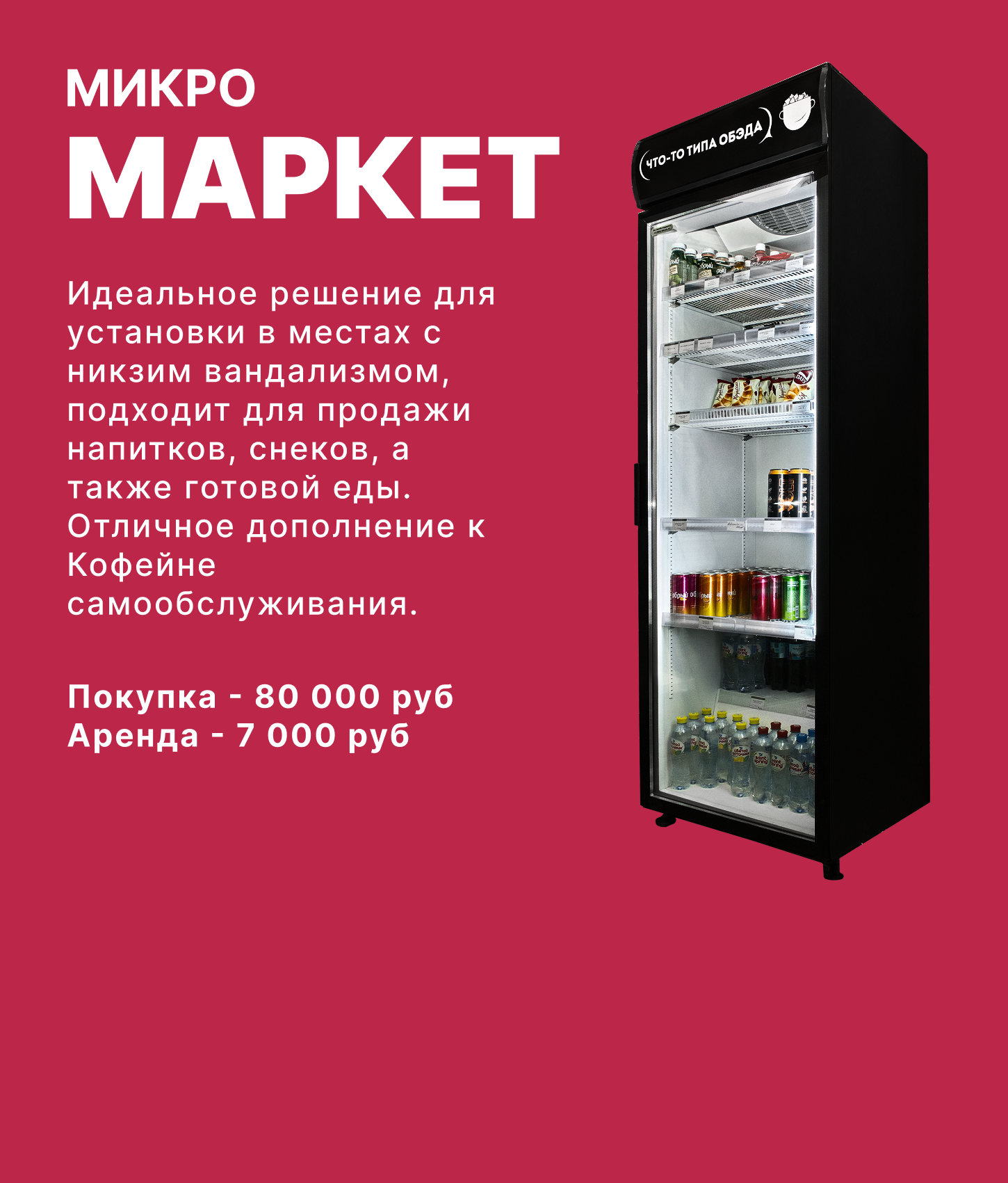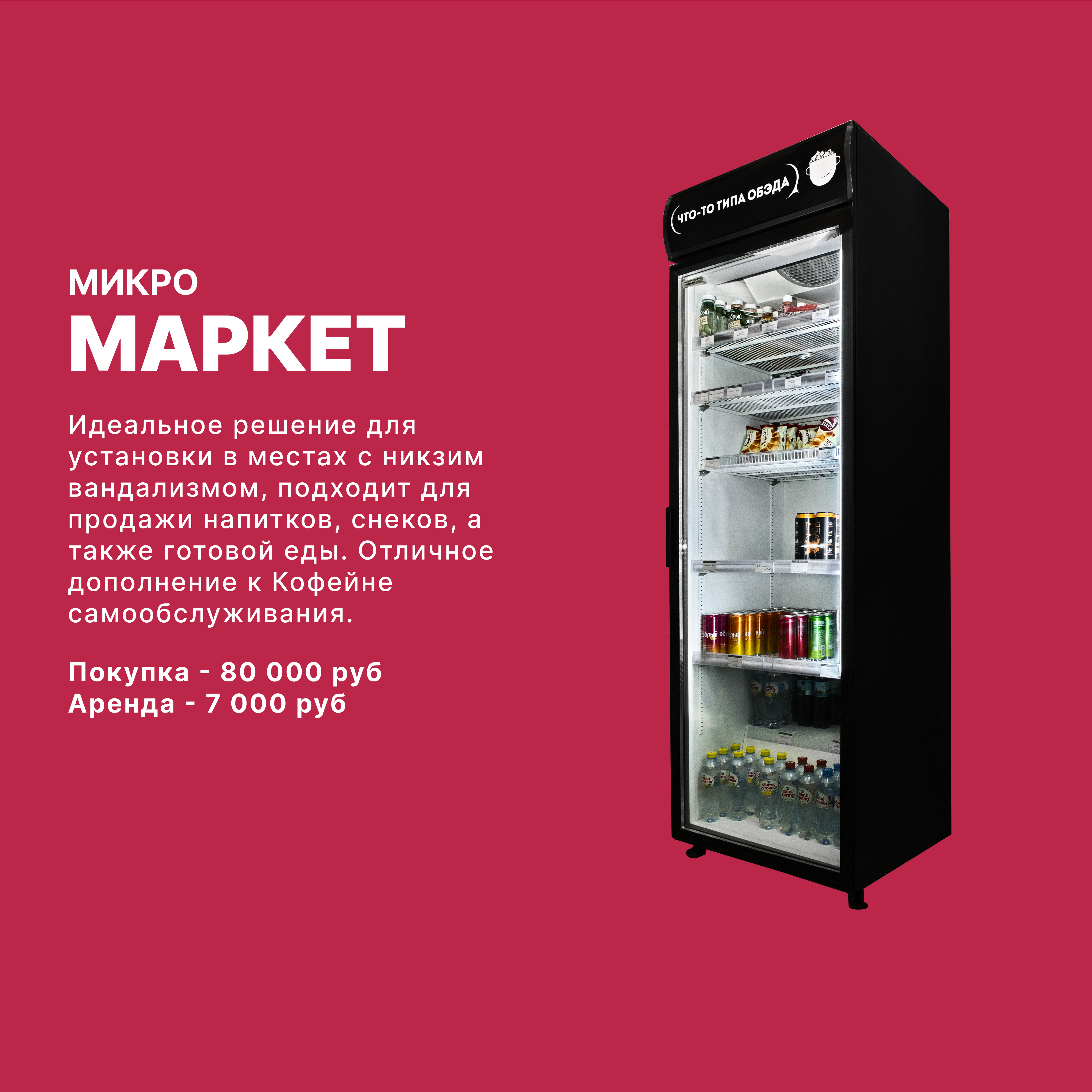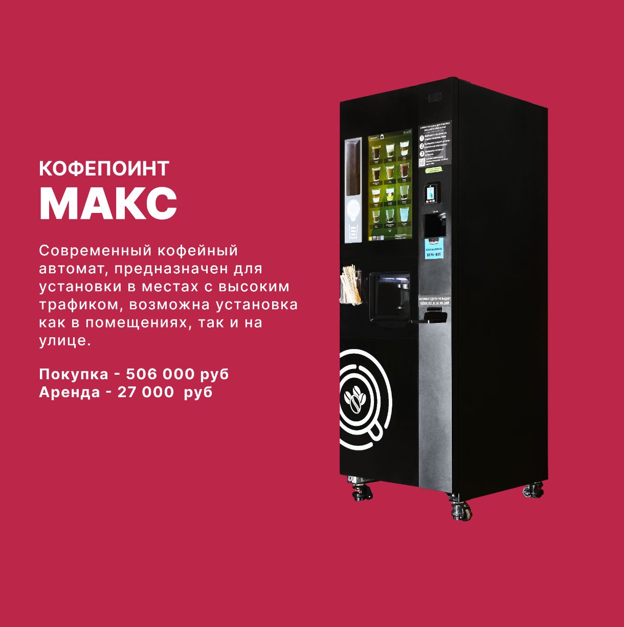 Наша компания специализируется на продаже, установке и обслуживании автоматизированных кофе-поинтов и микромаркетов самообслуживания.